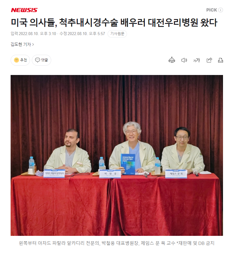 [NEWSIS] ¹Ì±¹ ÀÇ»çµé, ôÃß³»½Ã°æ¼ö¼ú ¹è¿ì·¯ ´ëÀü¿ì¸®º´¿ø ¿Ô´Ù