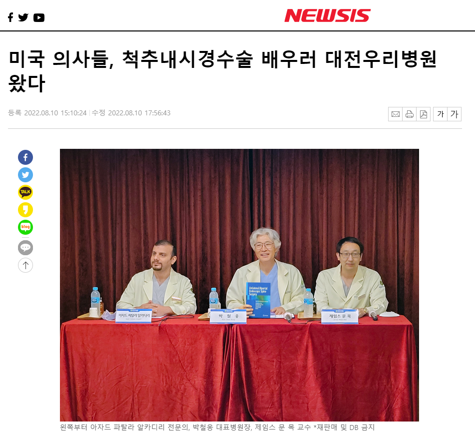 [NEWSIS] ¹Ì±¹ ÀÇ»çµé, ôÃß³»½Ã°æ¼ö¼ú ¹è¿ì·¯ ´ëÀü¿ì¸®º´¿ø ¿Ô´Ù