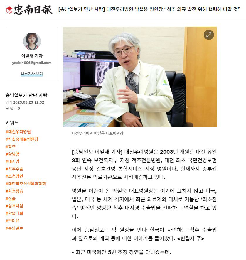 [Ãæ³²ÀϺ¸] [Ãæ³²ÀϺ¸°¡ ¸¸³ »ç¶÷] ´ëÀü¿ì¸®º´¿ø ¹Úö¿õ º´¿øÀå ¡°Ã´Ãß ÀÇ·á ¹ßÀü À§ÇØ Çù·ÂÇØ ³ª°¥ °Í¡±