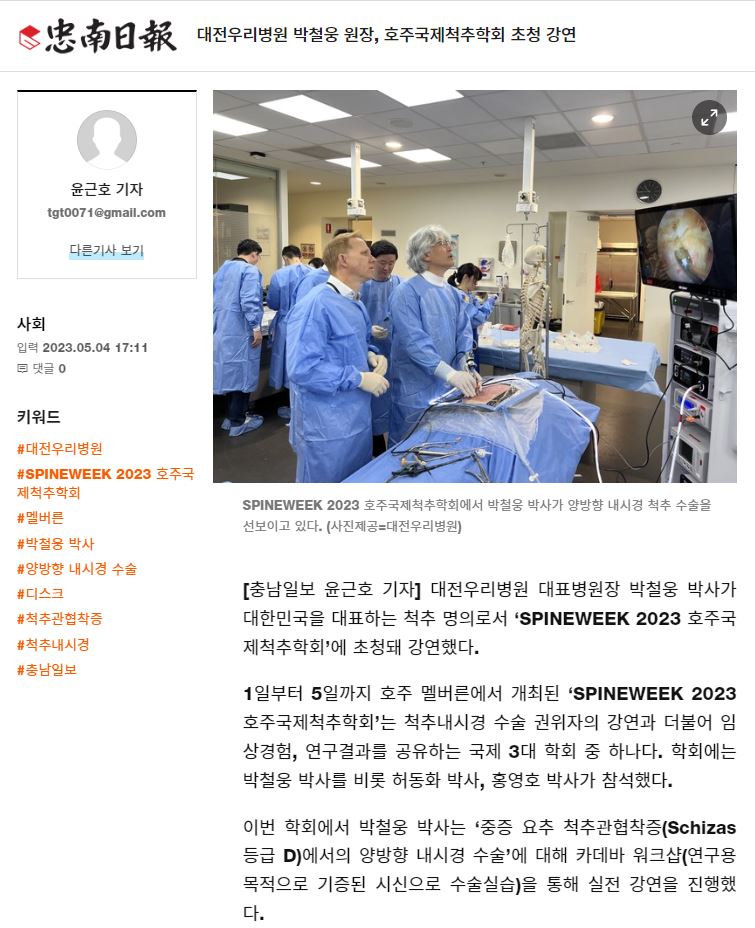 [Ãæ³²ÀϺ¸] ´ëÀü¿ì¸®º´¿ø ¹Úö¿õ ¿øÀå, È£ÁÖ±¹Á¦Ã´ÃßÇÐȸ ÃÊû °¿¬