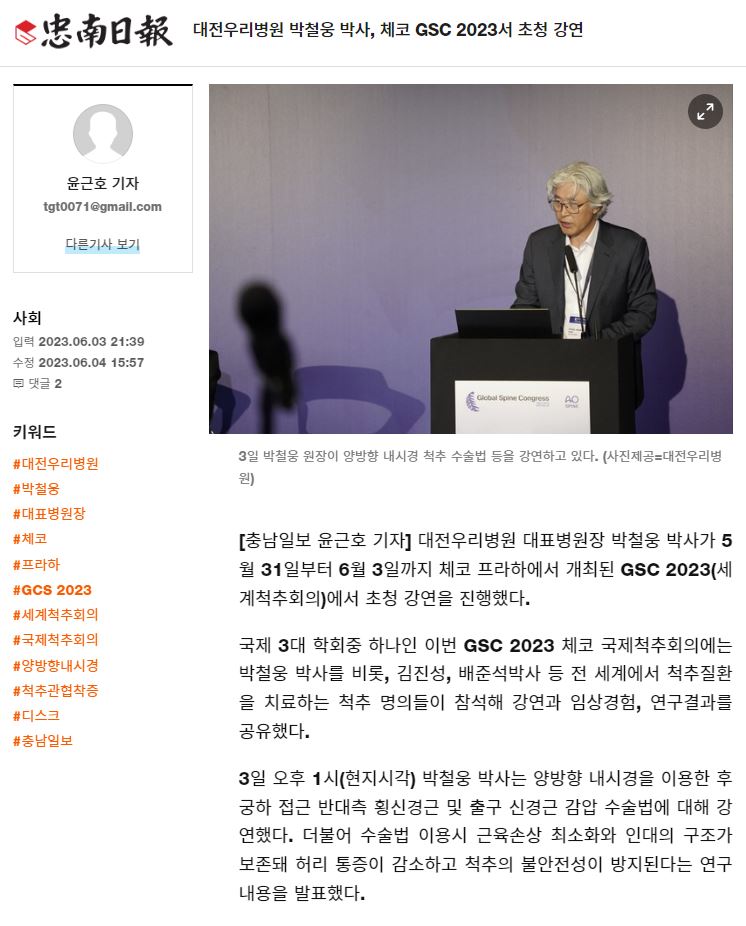 [Ãæ³²ÀϺ¸] ´ëÀü¿ì¸®º´¿ø ¹Úö¿õ ¹Ú»ç, üÄÚ GSC 2023¼ ÃÊû °¿¬