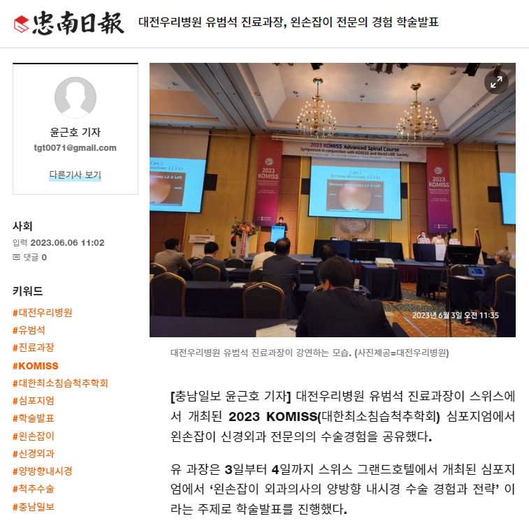 [Ãæ³²ÀϺ¸] ´ëÀü¿ì¸®º´¿ø À¯¹ü¼® Áø·á°úÀå, ¿Þ¼ÕÀâÀÌ Àü¹®ÀÇ °æÇè Çмú¹ßÇ¥
