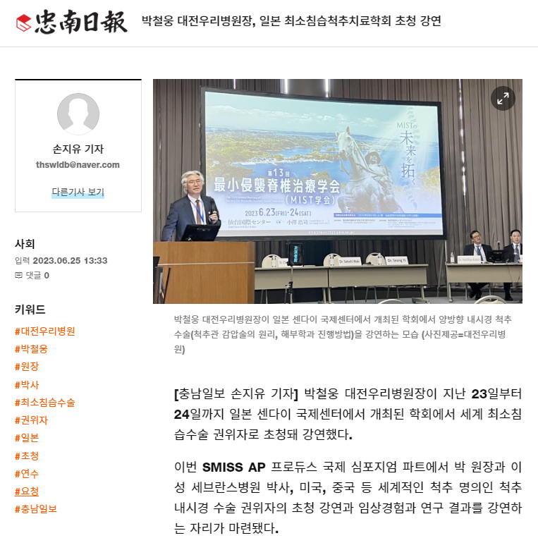 [Ãæ³²ÀϺ¸] ¹Úö¿õ ´ëÀü¿ì¸®º´¿øÀå, ÀϺ» ÃÖ¼Òħ½ÀôÃßÄ¡·áÇÐȸ ÃÊû °¿¬