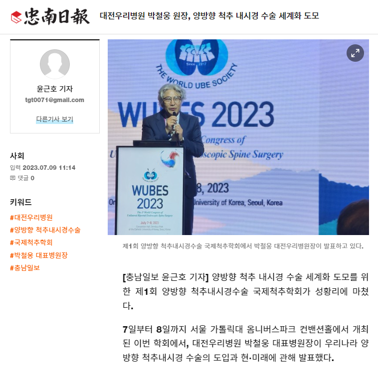 [Ãæ³²ÀϺ¸] ´ëÀü¿ì¸®º´¿ø ¹Úö¿õ ¿øÀå, ¾ç¹æÇâ ôÃß ³»½Ã°æ ¼ö¼ú ¼¼°èÈ µµ¸ð