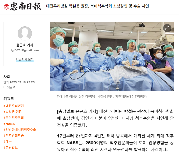 [Ãæ³²ÀϺ¸] ´ëÀü¿ì¸®º´¿ø ¹Úö¿õ ¿øÀå, ºÏ¹ÌôÃßÇÐȸ ÃÊû°¿¬ ¹× ¼ö¼ú ½Ã¿¬