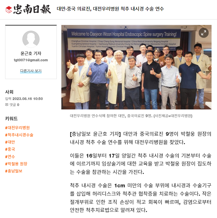 [Ãæ³²ÀϺ¸] ´ë¸¸¡¤Áß±¹ ÀÇ·áÁø, ´ëÀü¿ì¸®º´¿ø ôÃß ³»½Ã°æ ¼ö¼ú ¿¬¼ö