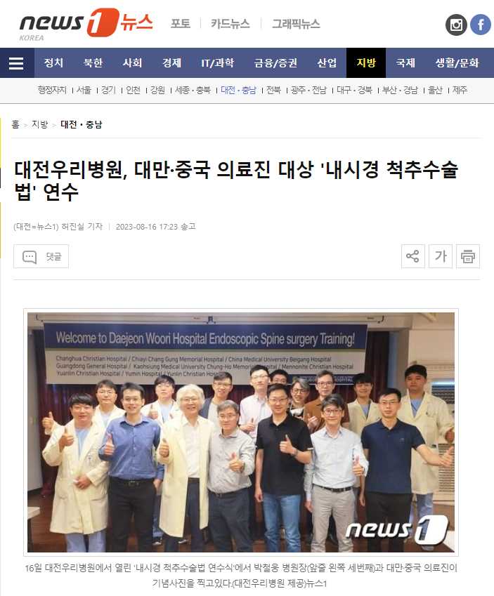 [NEWS1] ´ëÀü¿ì¸®º´¿ø, ´ë¸¸¡¤Áß±¹ ÀÇ·áÁø ´ë»ó '³»½Ã°æ ôÃß¼ö¼ú¹ý' ¿¬¼ö