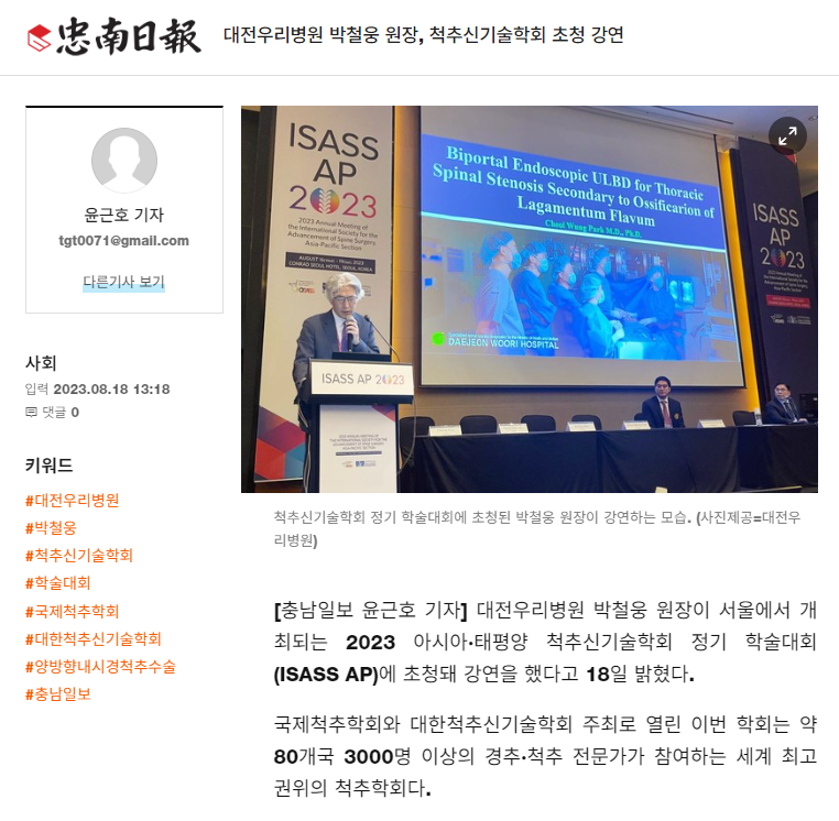 [Ãæ³²ÀϺ¸] ´ëÀü¿ì¸®º´¿ø ¹Úö¿õ ¿øÀå, ôÃ߽űâ¼úÇÐȸ ÃÊû °¿¬