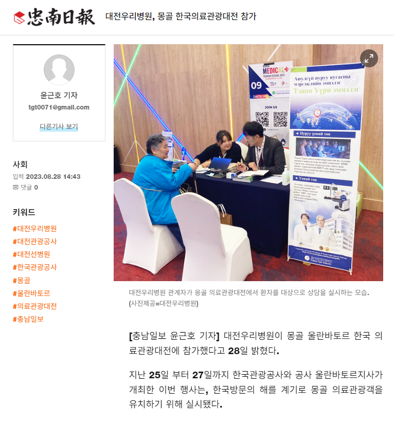 [Ãæ³²ÀϺ¸] ´ëÀü¿ì¸®º´¿ø, ¸ù°ñ Çѱ¹ÀÇ·á°ü±¤´ëÀü Âü°¡