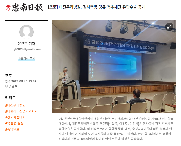 [Ãæ³²ÀϺ¸] [Æ÷Åä] ´ëÀü¿ì¸®º´¿ø, °æ»çÃø¹æ °æÀ¯ ôÃßü°£ À¯ÇÕ¼ö¼ú °ø°³