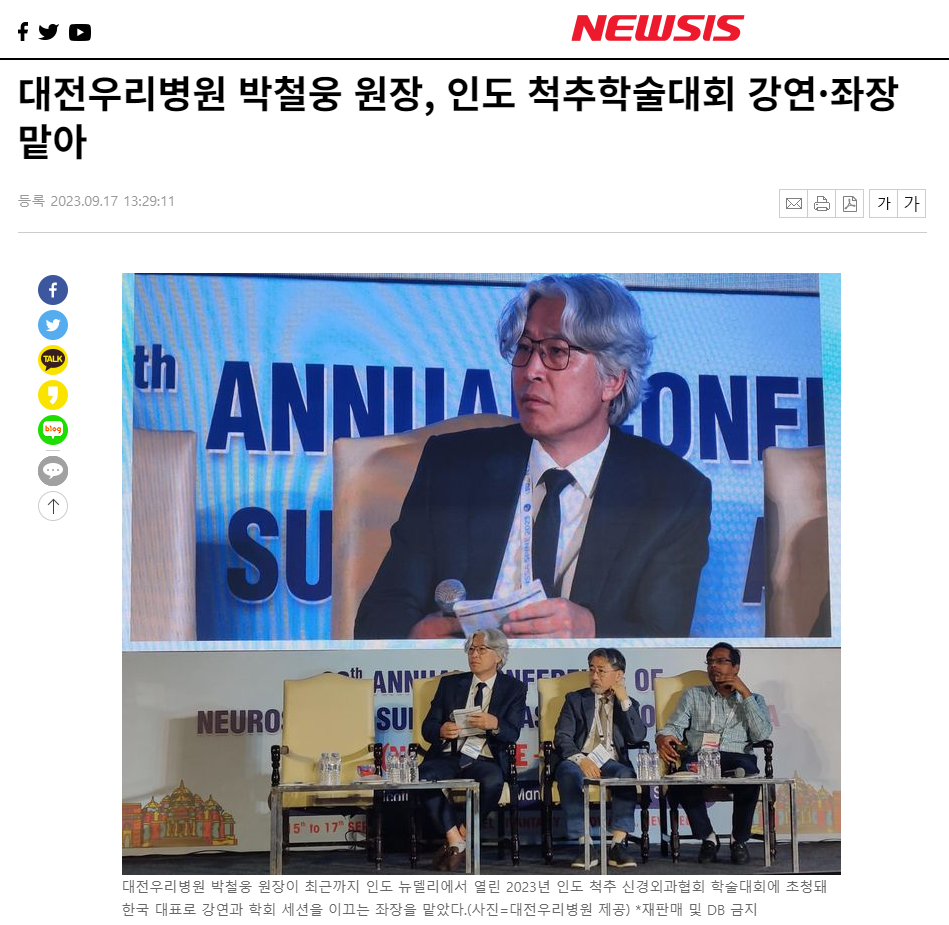 [NEWSIS] ´ëÀü¿ì¸®º´¿ø ¹Úö¿õ ¿øÀå, Àεµ ôÃßÇмú´ëȸ °¿¬¡¤ÁÂÀå ¸Ã¾Æ