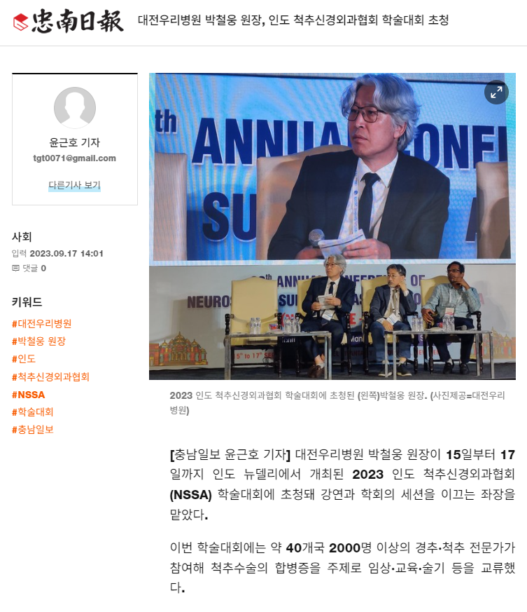 [Ãæ³²ÀϺ¸] ´ëÀü¿ì¸®º´¿ø ¹Úö¿õ ¿øÀå, Àεµ ôÃ߽Űæ¿Ü°úÇùȸ Çмú´ëȸ ÃÊû