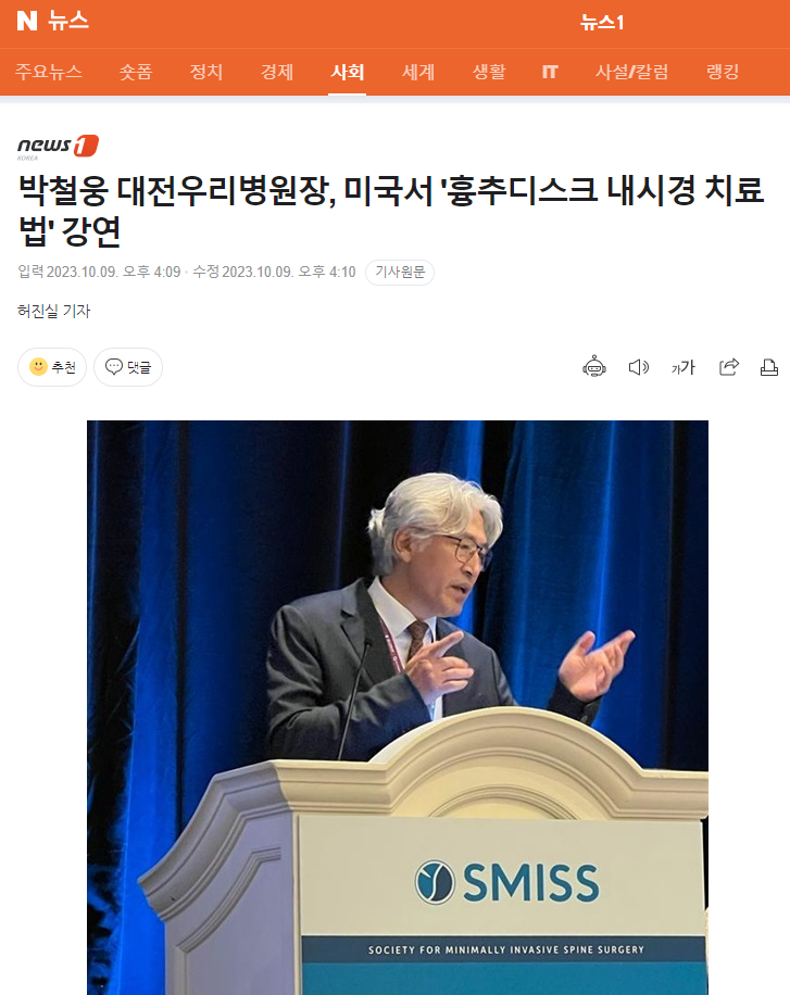[³×À̹ö ´º½º - NEWS1] ¹Úö¿õ ´ëÀü¿ì¸®º´¿øÀå, ¹Ì±¹¼ 'ÈäÃßµð½ºÅ© ³»½Ã°æ Ä¡·á¹ý' °¿¬