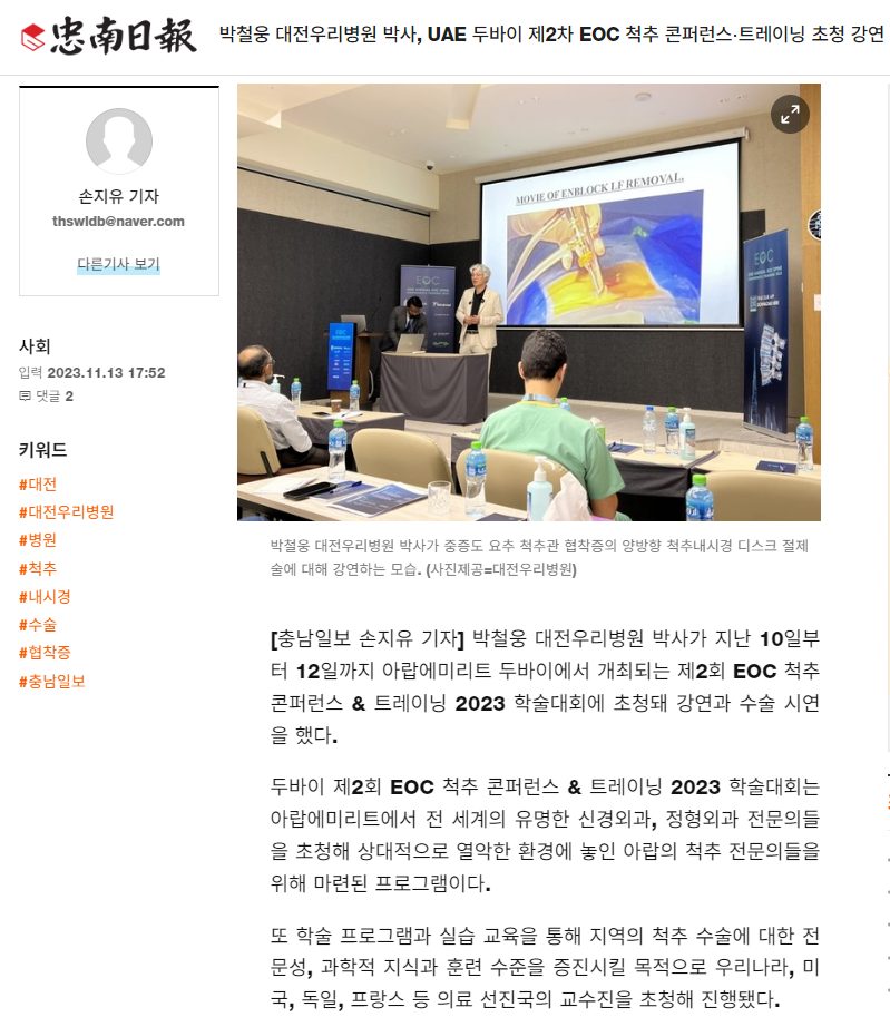 [Ãæ³²ÀϺ¸] ¹Úö¿õ ´ëÀü¿ì¸®º´¿ø ¹Ú»ç, UAE µÎ¹ÙÀÌ Á¦2Â÷ EOC ôÃß ÄÜÆÛ·±½º‧Æ®·¹ÀÌ´× ÃÊû °¿¬
