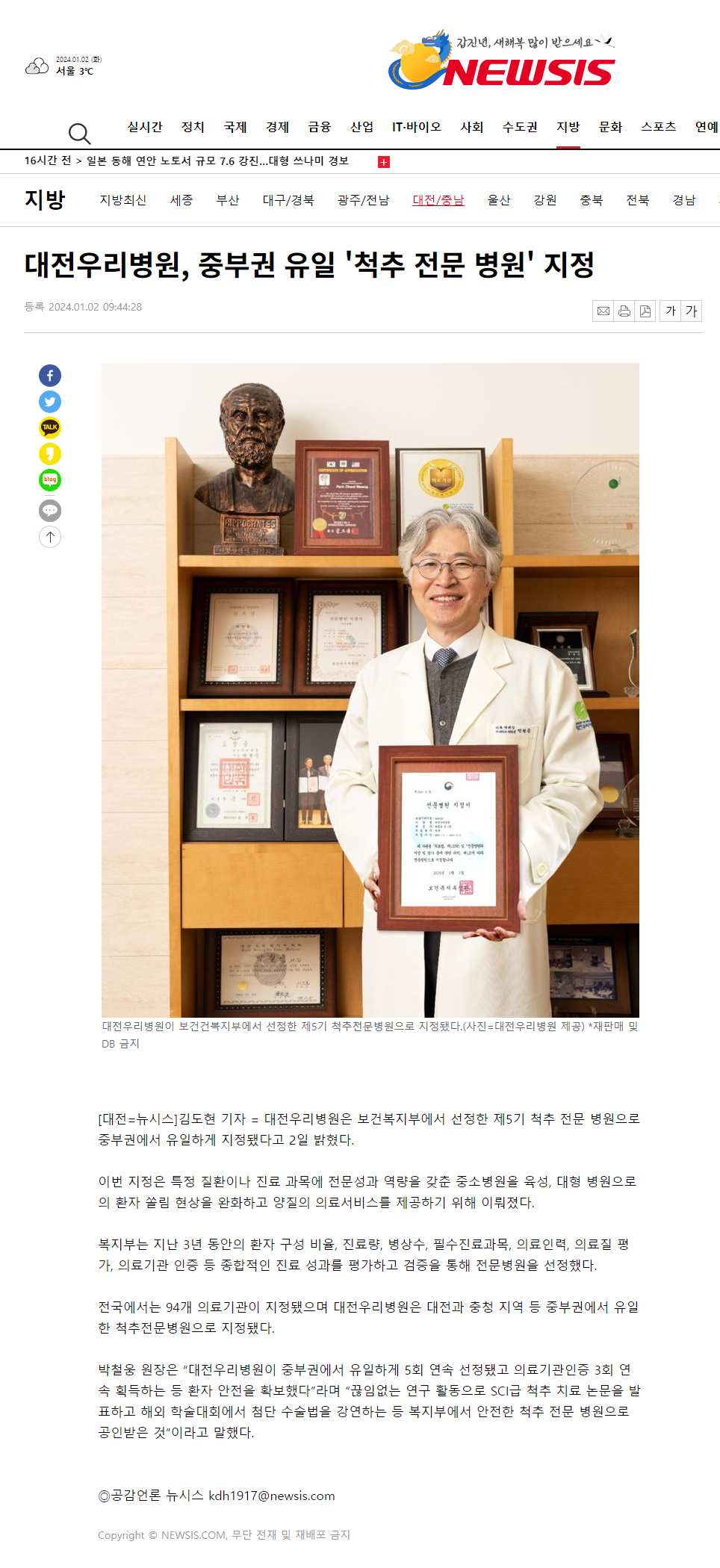 [NEWSIS] ´ëÀü¿ì¸®º´¿ø, ÁßºÎ±Ç À¯ÀÏ 'ôÃß Àü¹® º´¿ø' ÁöÁ¤