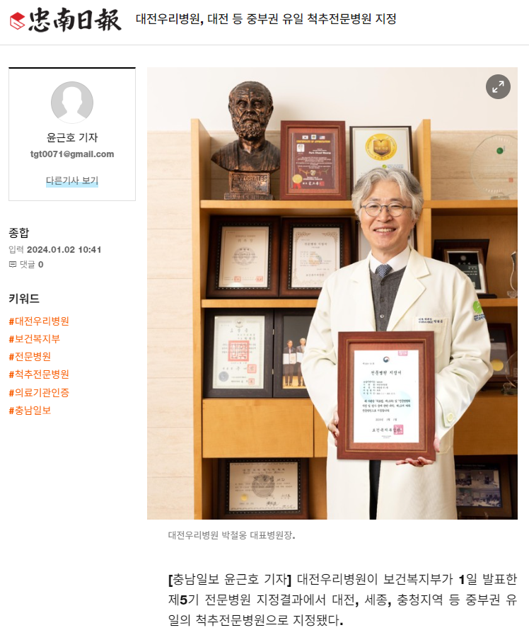[Ãæ³²ÀϺ¸] ´ëÀü¿ì¸®º´¿ø, ´ëÀü µî ÁßºÎ±Ç À¯ÀÏ Ã´ÃßÀü¹®º´¿ø ÁöÁ¤