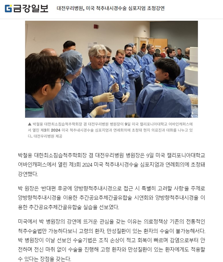 [±Ý°ÀϺ¸] ´ëÀü¿ì¸®º´¿ø, ¹Ì±¹ ôÃß³»½Ã°æ¼ö¼ú ½ÉÆ÷Áö¾ö ÃÊû°¿¬