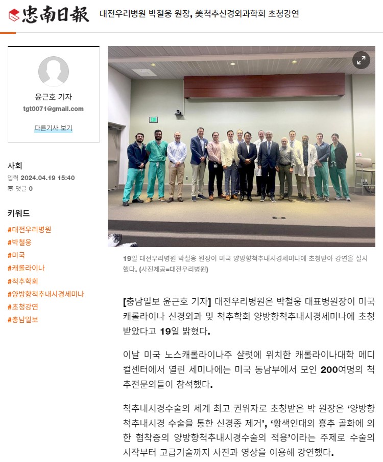 [Ãæ³²ÀϺ¸] ´ëÀü¿ì¸®º´¿ø ¹Úö¿õ ¿øÀå, ڸôÃ߽Űæ¿Ü°úÇÐȸ ÃÊû°¿¬