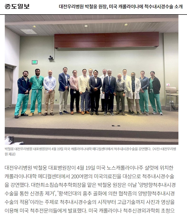 [ÁßµµÀϺ¸] ´ëÀü¿ì¸®º´¿ø ¹Úö¿õ ¿øÀå, ¹Ì±¹ ij·Ñ¶óÀ̳ª¿¡ ô¼ö³»½Ã°æ¼ö¼ú ¼Ò°³