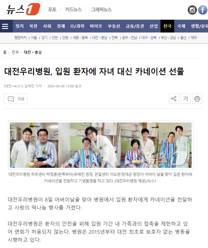 [NEWS1] ´ëÀü¿ì¸®º´¿ø, ÀÔ¿ø ȯÀÚ¿¡ ÀÚ³à ´ë½Å Ä«³×ÀÌ¼Ç ¼±¹°