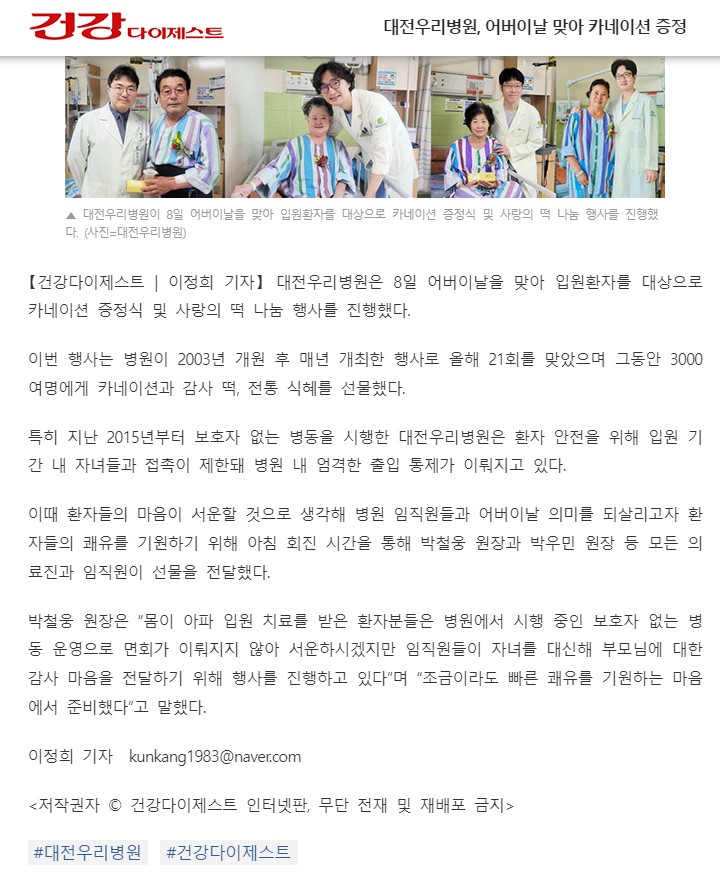 [°Ç°´ÙÀÌÁ¦½ºÆ®] ´ëÀü¿ì¸®º´¿ø, ¾î¹öÀ̳¯ ¸Â¾Æ Ä«³×ÀÌ¼Ç ÁõÁ¤