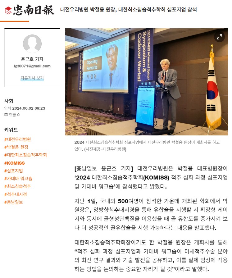 [Ãæ³²ÀϺ¸] ´ëÀü¿ì¸®º´¿ø ¹Úö¿õ ¿øÀå, ´ëÇÑÃÖ¼Òħ½ÀôÃßÇÐȸ ½ÉÆ÷Áö¾ö Âü¼®