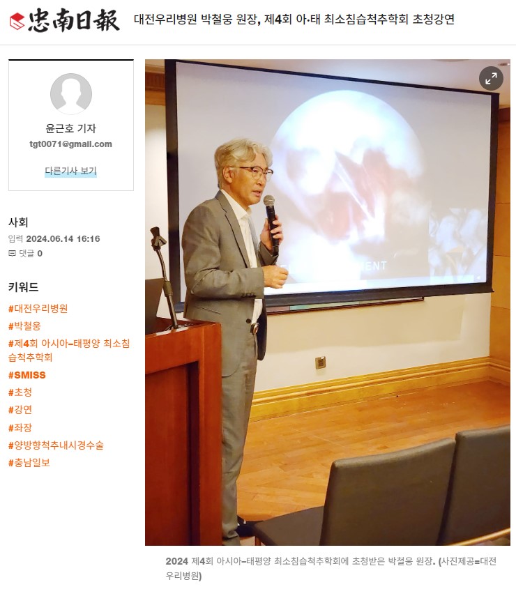 [Ãæ³²ÀϺ¸] ´ëÀü¿ì¸®º´¿ø ¹Úö¿õ ¿øÀå, Á¦4ȸ ¾Æ¡¤Å ÃÖ¼Òħ½ÀôÃßÇÐȸ ÃÊû°¿¬