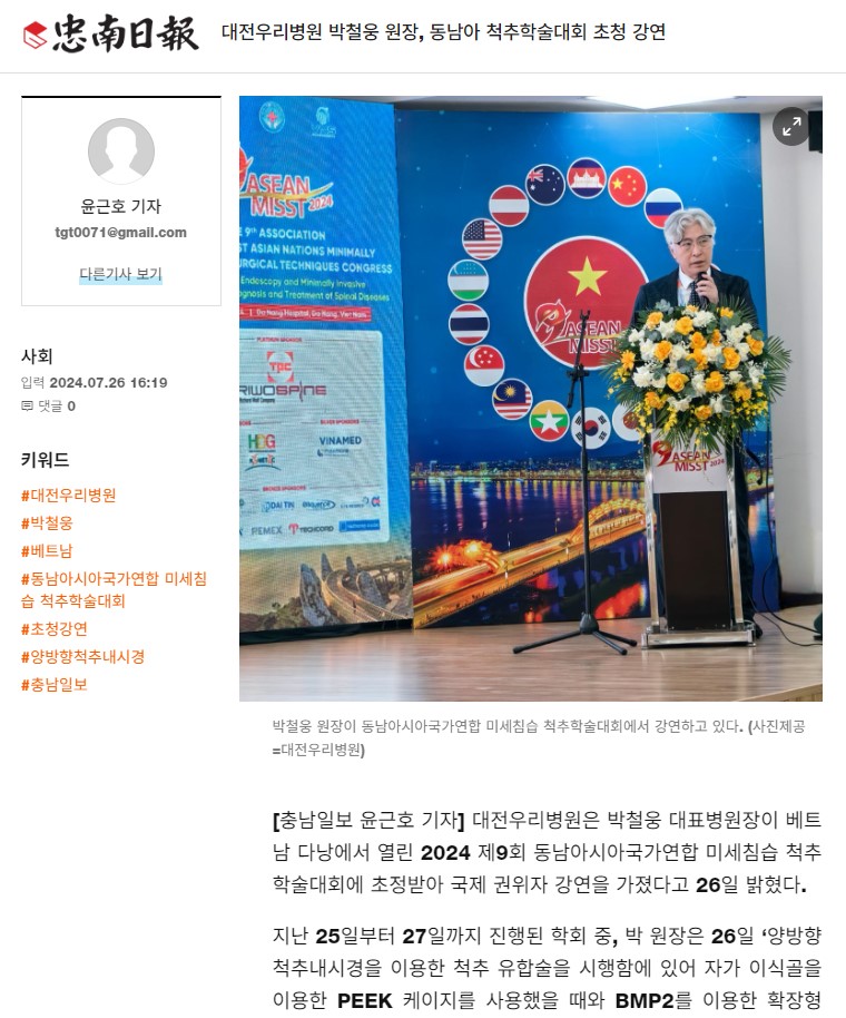 [Ãæ³²ÀϺ¸] ´ëÀü¿ì¸®º´¿ø ¹Úö¿õ ¿øÀå, µ¿³²¾Æ ôÃßÇмú´ëȸ ÃÊû °¿¬