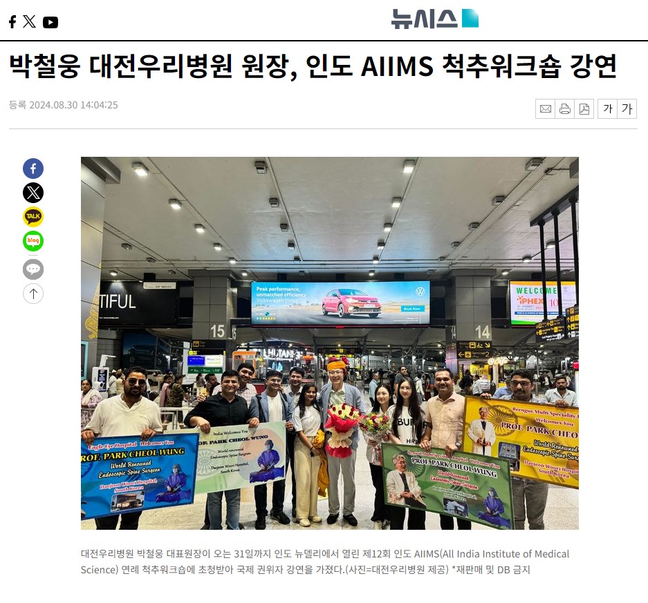 [´º½Ã½º] ¹Úö¿õ ´ëÀü¿ì¸®º´¿ø ¿øÀå, Àεµ AIIMS ôÃß¿öÅ©¼ó °¿¬