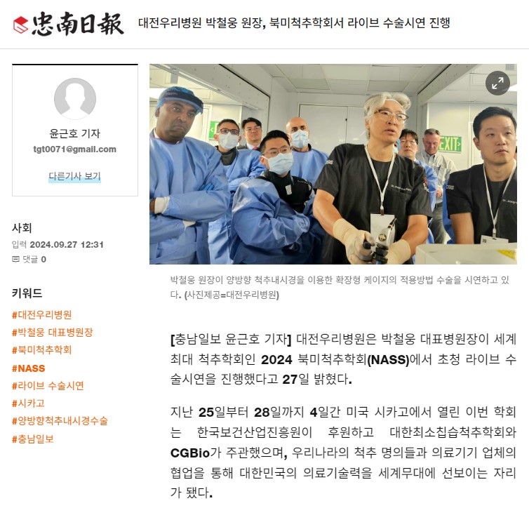 [Ãæ³²ÀϺ¸] ´ëÀü¿ì¸®º´¿ø ¹Úö¿õ ¿øÀå, ºÏ¹ÌôÃßÇÐȸ¼ ¶óÀÌºê ¼ö¼ú½Ã¿¬ ÁøÇà