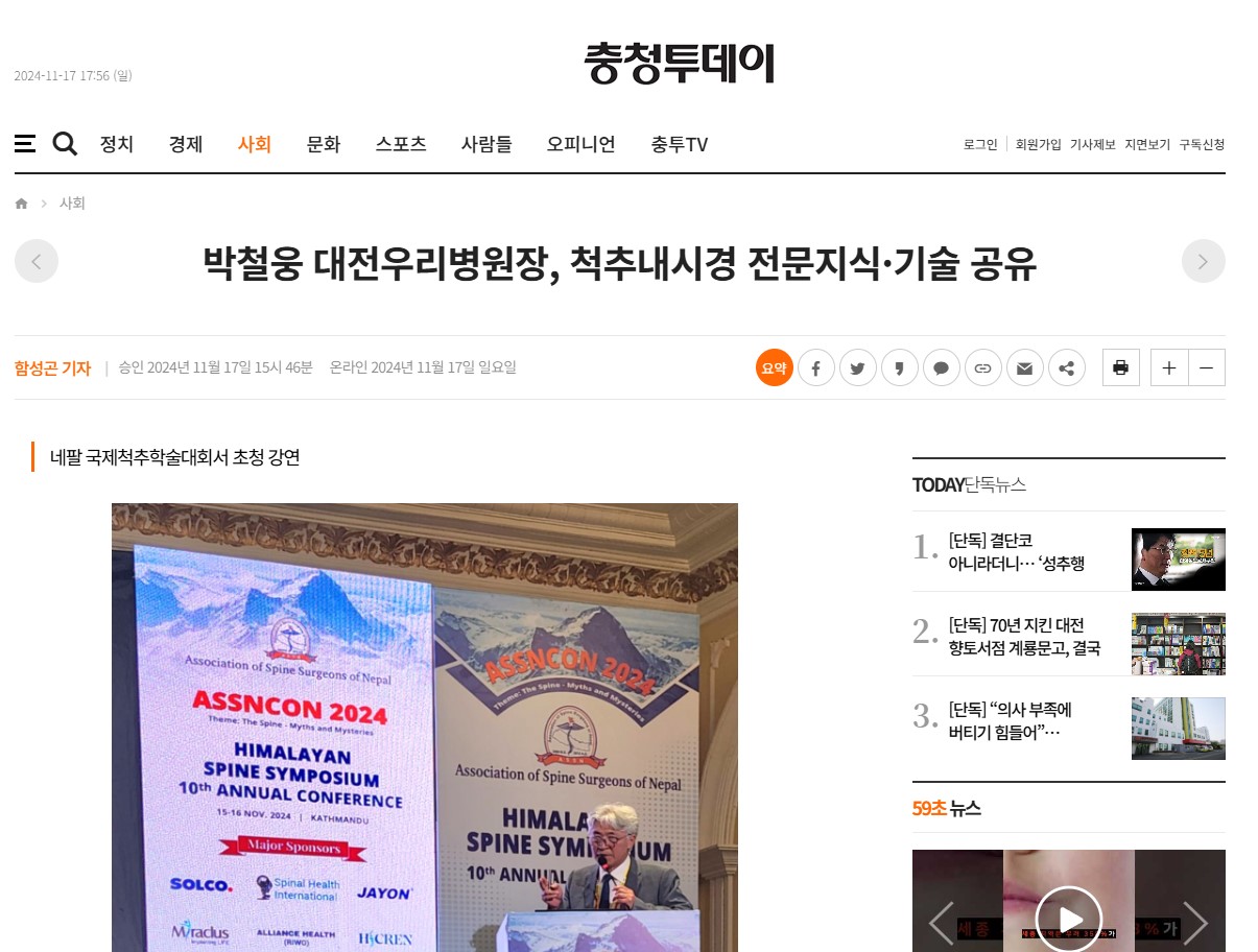 [ÃæÃ»Åõµ¥ÀÌ] ¹Úö¿õ ´ëÀü¿ì¸®º´¿øÀå, ôÃß³»½Ã°æ Àü¹®Áö½Ä¡¤±â¼ú °øÀ¯