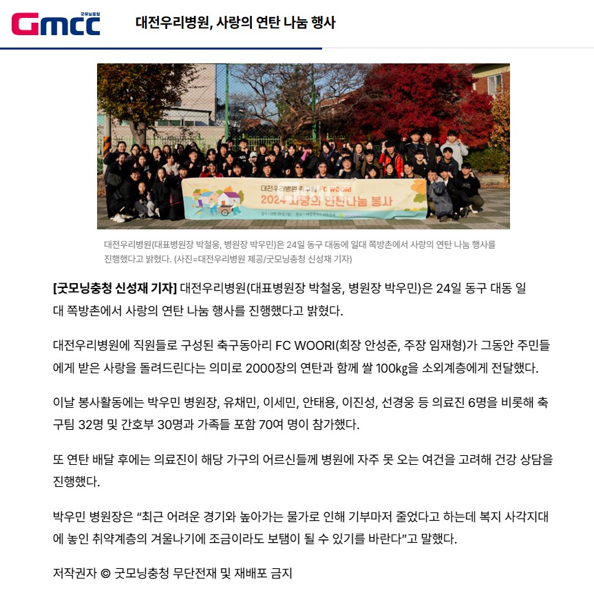 [±Â¸ð´×ÃæÃ»] ´ëÀü¿ì¸®º´¿ø, »ç¶ûÀÇ ¿¬Åº ³ª´® Çà»ç