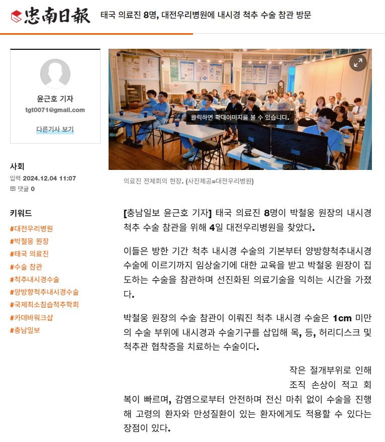 [Ãæ³²ÀϺ¸] ű¹ ÀÇ·áÁø 8¸í, ´ëÀü¿ì¸®º´¿ø¿¡ ³»½Ã°æ ôÃß ¼ö¼ú Âü°ü ¹æ¹®