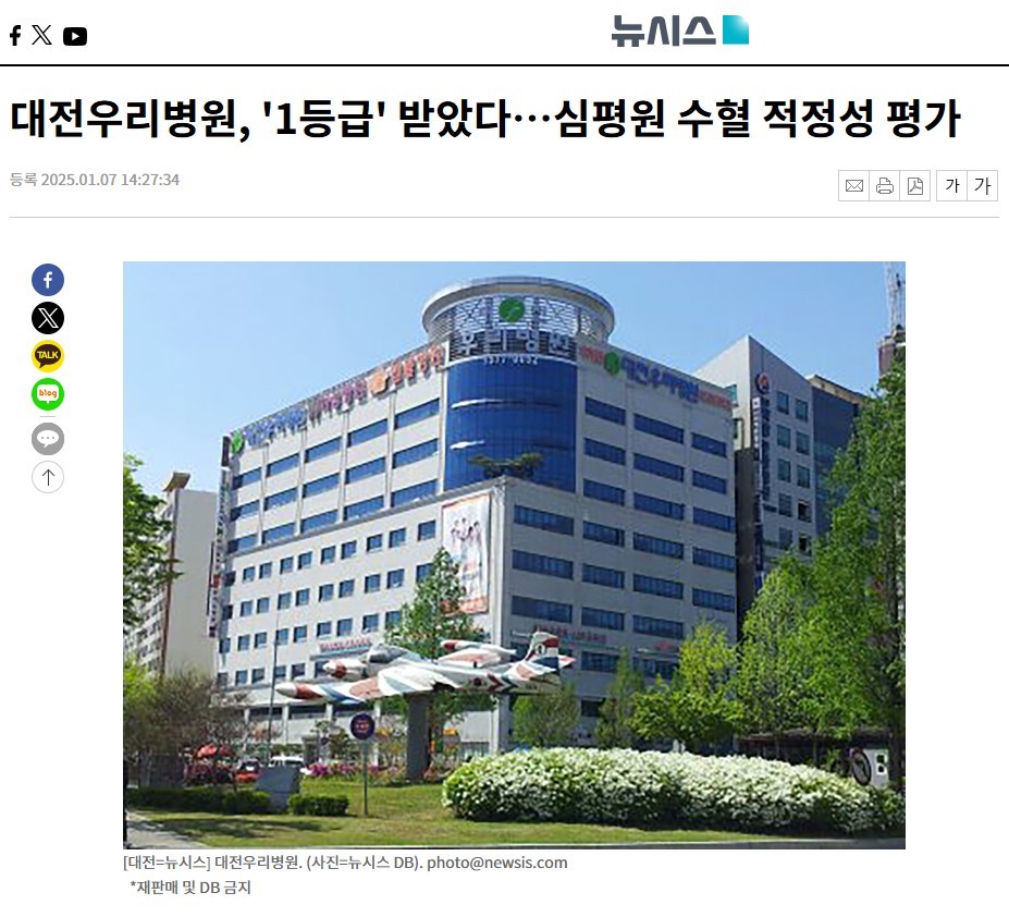 [´º½Ã½º] ´ëÀü¿ì¸®º´¿ø, '1µî±Þ' ¹Þ¾Ò´Ù¡¦½ÉÆò¿ø ¼öÇ÷ ÀûÁ¤¼º Æò°¡