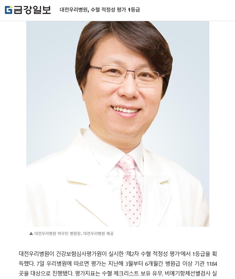 [±Ý°ÀϺ¸] ´ëÀü¿ì¸®º´¿ø, ¼öÇ÷ ÀûÁ¤¼º Æò°¡ 1µî±Þ