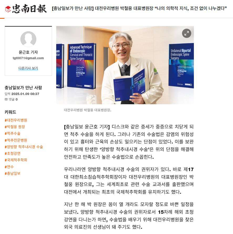 [Ãæ³²ÀϺ¸] [Ãæ³²ÀϺ¸°¡ ¸¸³ »ç¶÷] ´ëÀü¿ì¸®º´¿ø ¹Úö¿õ ´ëÇ¥º´¿øÀå ¡°³ªÀÇ ÀÇÇÐÀû Áö½Ä, Á¶°Ç ¾øÀÌ ³ª´©°Ú´Ù¡±