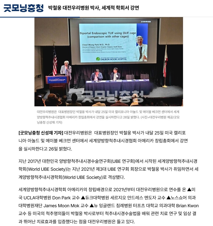 [±Â¸ð´×ÃæÃ»] ¹Úö¿õ ´ëÀü¿ì¸®º´¿ø ¹Ú»ç, ¼¼°èÀû ÇÐȸ¼ °¿¬