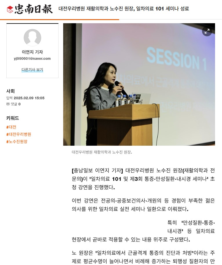 [Ãæ³²ÀϺ¸] ´ëÀü¿ì¸®º´¿ø ÀçȰÀÇÇаú ³ë¼öÁø ¿øÀå, ÀÏÂ÷ÀÇ·á 101 ¼¼¹Ì³ª ¼º·á