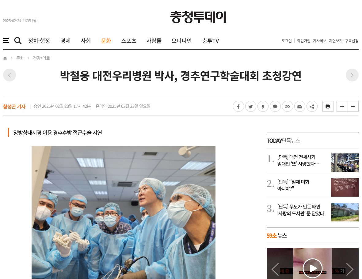 [ÃæÃ»Åõµ¥ÀÌ] ¹Úö¿õ ´ëÀü¿ì¸®º´¿ø ¹Ú»ç, °æÃß¿¬±¸Çмú´ëȸ ÃÊû°¿¬