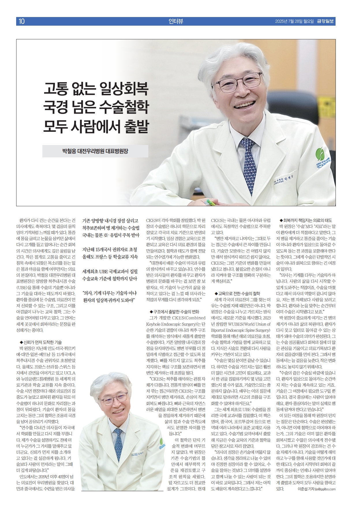 [±Ý°ÀϺ¸] [¿ÍÀ̵å ÀÎÅͺä] °íÅë ¾ø´Â ÀÏ»óȸº¹¡¦±¹°æ ³ÑÀº ¼ö¼úöÇÐ
