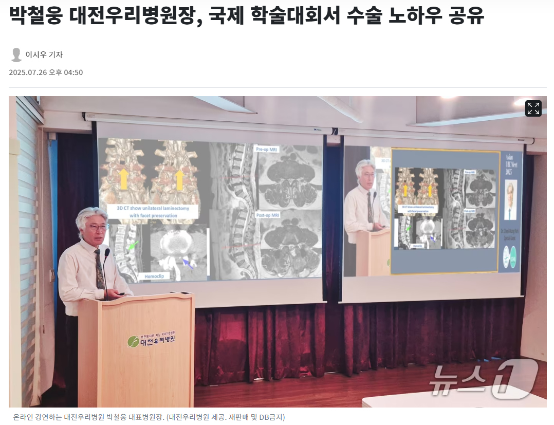 [´º½º1] ¹Úö¿õ ´ëÀü¿ì¸®º´¿øÀå, ±¹Á¦ Çмú´ëȸ¼ ¼ö¼ú ³ëÇÏ¿ì °øÀ¯