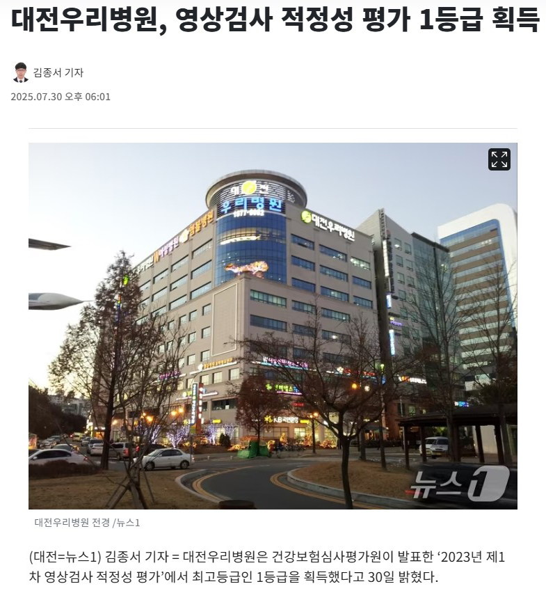 [´º½º1] ´ëÀü¿ì¸®º´¿ø, ¿µ»ó°Ë»ç ÀûÁ¤¼º Æò°¡ 1µî±Þ ȹµæ