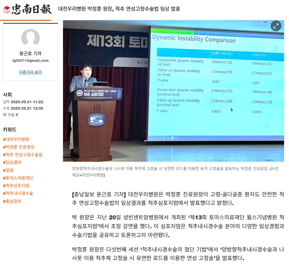 [Ãæ³²ÀϺ¸] ´ëÀü¿ì¸®º´¿ø ¹ÚÁ¤ÈÆ ¿øÀå, ôÃß ¿¬¼º°íÁ¤¼ö¼ú¹ý ÀÓ»ó ¹ßÇ¥