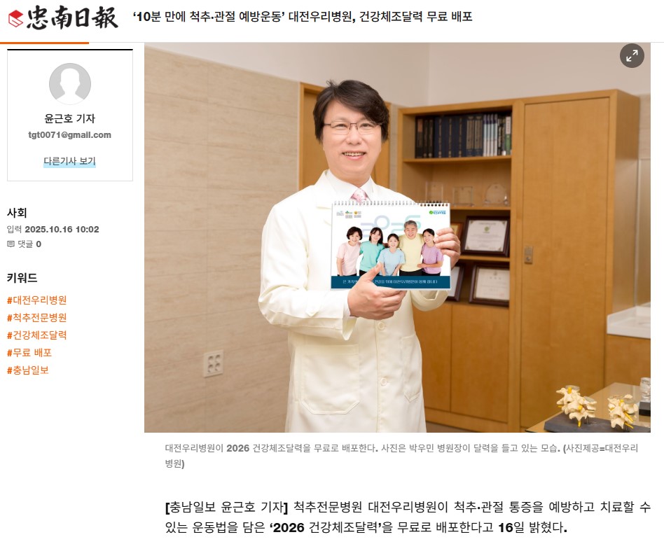 [Ãæ³²ÀϺ¸] ¡®10ºÐ ¸¸¿¡ ôÃß¡¤°üÀý ¿¹¹æ¿îµ¿¡¯ ´ëÀü¿ì¸®º´¿ø, °Ç°Ã¼Á¶´Þ·Â ¹«·á ¹èÆ÷