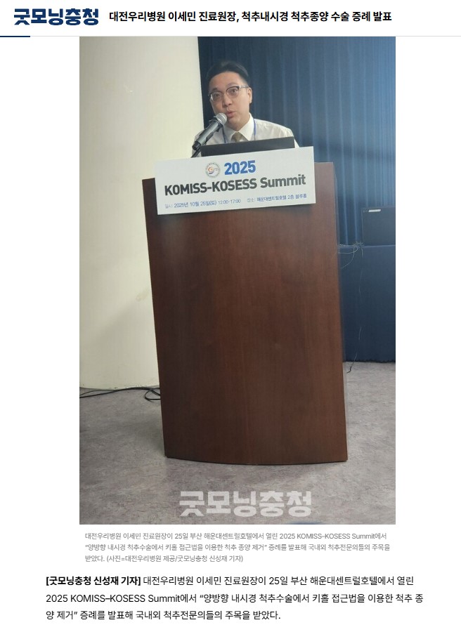 [±Â¸ð´×ÃæÃ»] ´ëÀü¿ì¸®º´¿ø À̼¼¹Î Áø·á¿øÀå, ôÃß³»½Ã°æ ôÃßÁ¾¾ç ¼ö¼ú Áõ·Ê ¹ßÇ¥