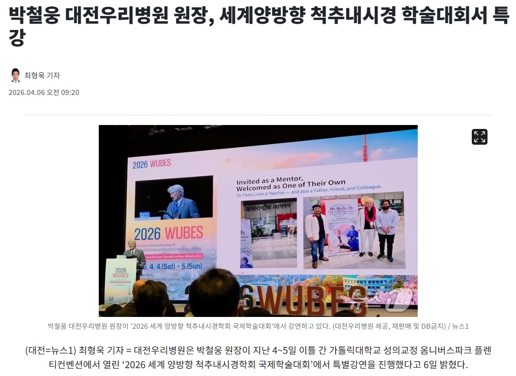 [´º½º¿ø] ¹Úö¿õ ´ëÀü¿ì¸®º´¿ø ¿øÀå, ¼¼°è¾ç¹æÇâ ôÃß³»½Ã°æ Çмú´ëȸ¼ Ư°