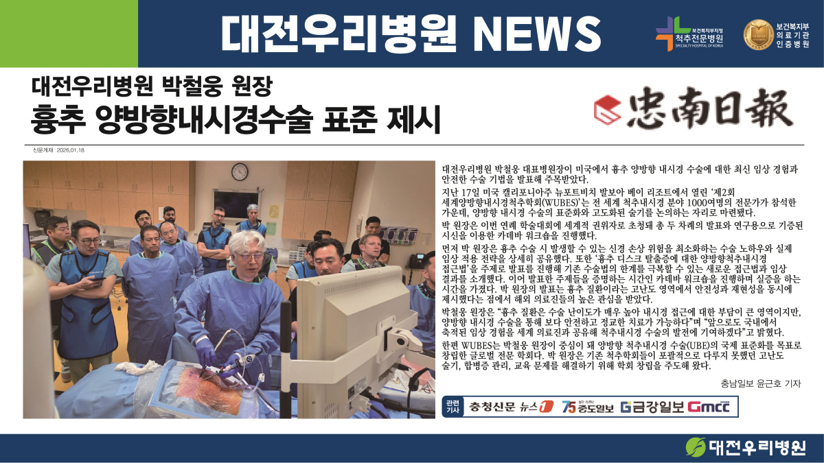 [Ãæ³²ÀϺ¸] ´ëÀü¿ì¸®º´¿ø ¹Úö¿õ ¿øÀå, ¡®ÈäÃß ¾ç¹æÇâ ³»½Ã°æ ¼ö¼ú¡¯ ¼¼°è Ç¥ÁØ Á¦½Ã