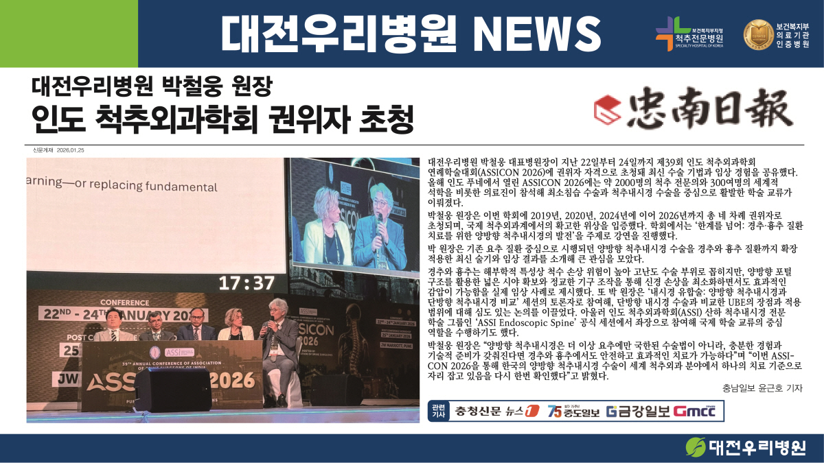 [Ãæ³²ÀϺ¸] ´ëÀü¿ì¸®º´¿ø ¹Úö¿õ ¿øÀå, Àεµ ôÃ߿ܰúÇÐȸ ±ÇÀ§ÀÚ ÃÊû
