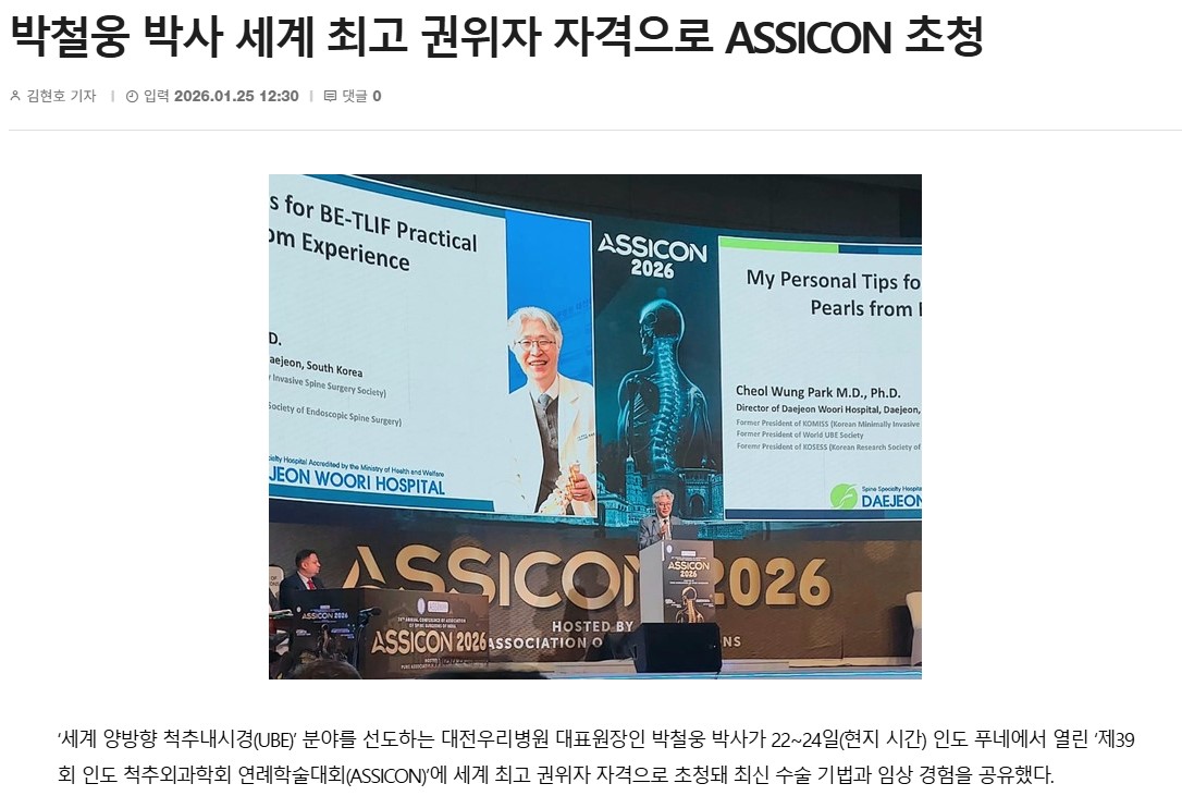 [±Ý°ÀϺ¸] ¹Úö¿õ ¹Ú»ç ¼¼°è ÃÖ°í ±ÇÀ§ÀÚ ÀÚ°ÝÀ¸·Î ASSICON ÃÊû