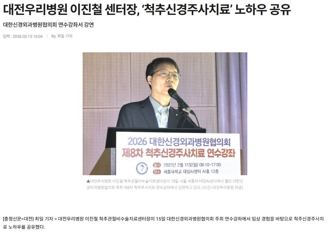 [ÃæÃ»½Å¹®] ´ëÀü¿ì¸®º´¿ø ÀÌÁøÃ¶ ¼¾ÅÍÀå, ¡®Ã´Ã߽ŰæÁÖ»çÄ¡·á¡¯ ³ëÇÏ¿ì °øÀ¯